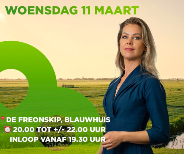 Op woensdag 11 maart vindt er een verkiezingsbijeenkomst plaats in Blauwhuis voor BBB-leden, inwoners, ondernemers en andere geïnteresseerden. Thema’s die deze avond aan bod zullen komen zijn: wonen, voorzieningenbehoud, landbouw en cultuurtradities op het platteland. Femke Wiersma, voormalig minister van…